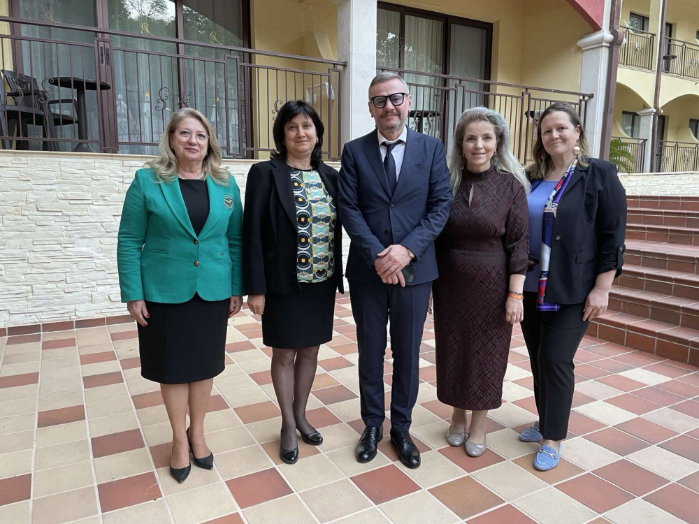 От името на Асоциацията Малинка Маринова връчи плакет на министъра на туризма „за принос и подкрепа в развитието на професионалното образование в туризма“.